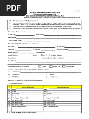 27 12 2018 Borang Pb1 Borang Permohonan Bantuan Persekolahan Pdf