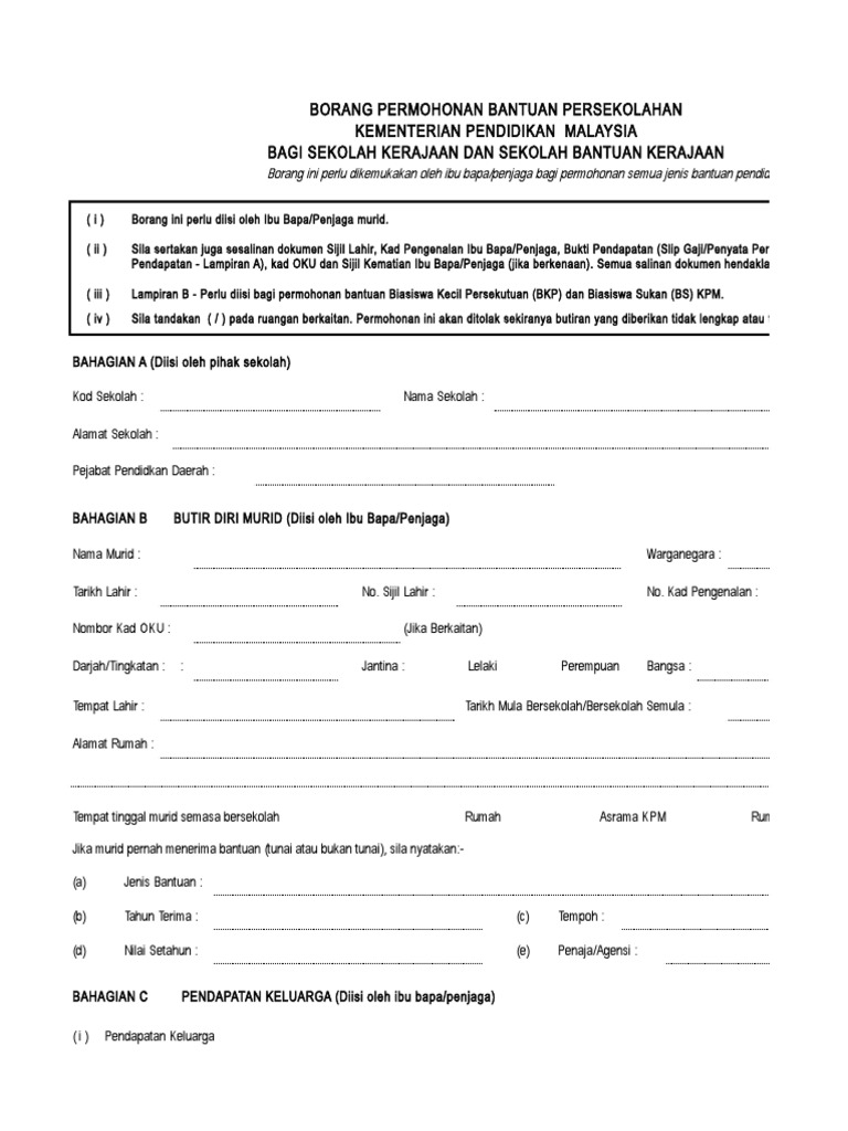 Borang Permohonan Bantuan Awal Persekolahan Kpm 2021 Bantuan Semasa